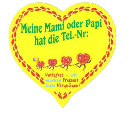 Sie erhalten bei uns GRATIS einen hochwertigen Textilaufkleber zum Eintragen Ihrer Telefonnummer. Wenn kleine Kinder im Trubel eines Festplatzes aus den Augen verloren gehen ist die "Familienzusammenführung" sicher schnell erledigt.